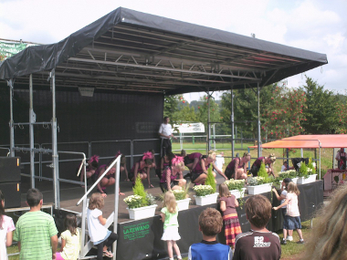 Dieses mobile Bühnensystem bietet auch für größere Aktionen ausreichend Platz auf der Bühne.